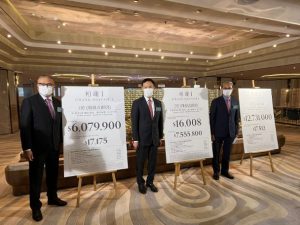 中國海外地產董事總經理游偉光指,三房售價及呎價最低單位為第1期第3座5樓A2室,實用面積727方呎,折實價為1,271.3萬元,呎價約17,512元。
