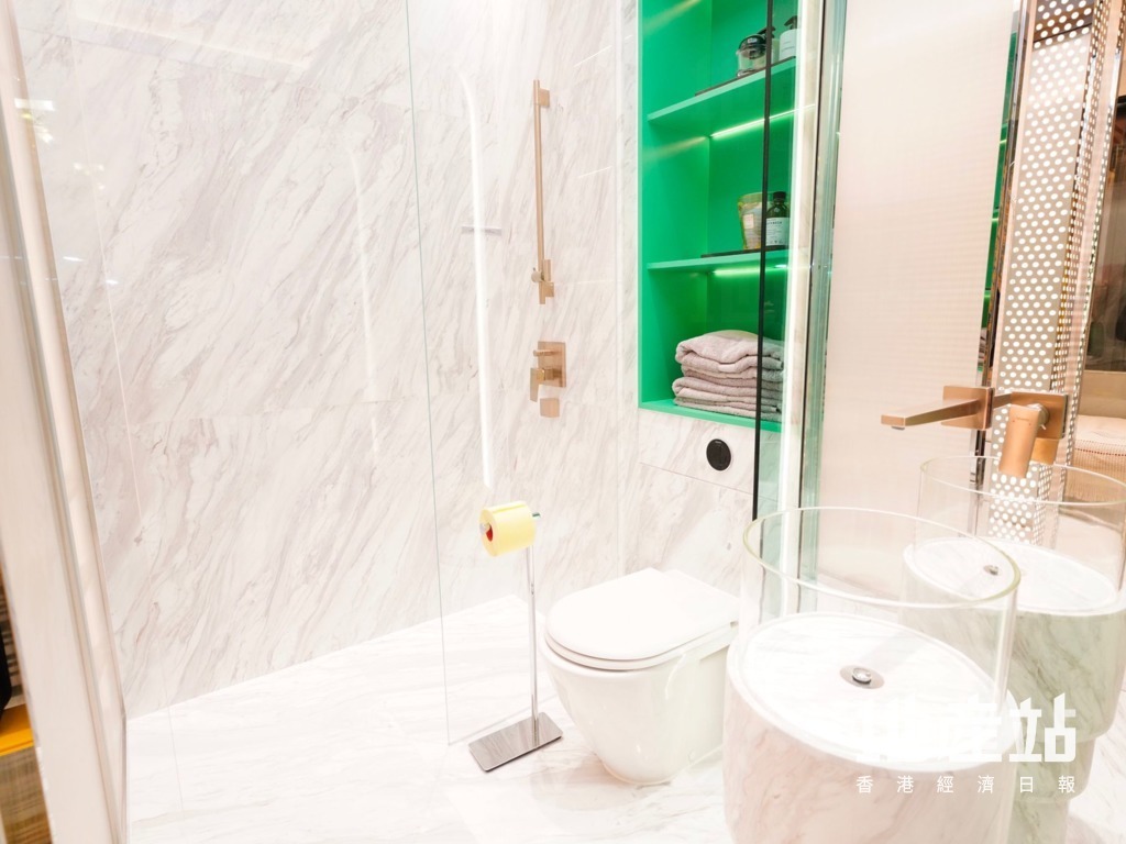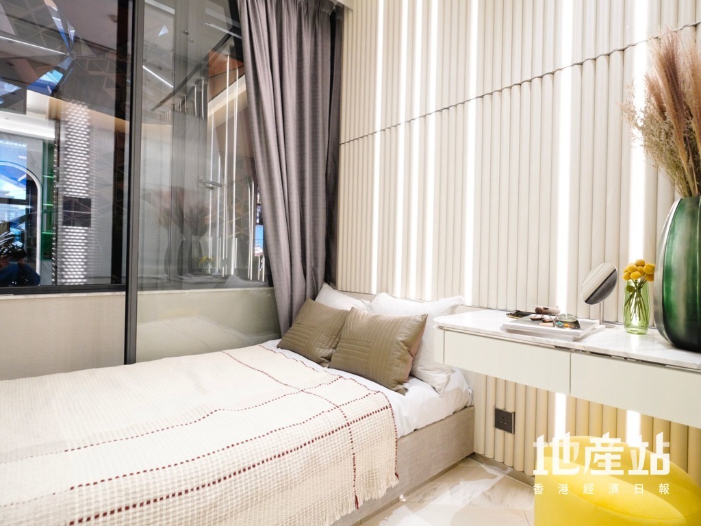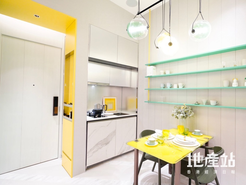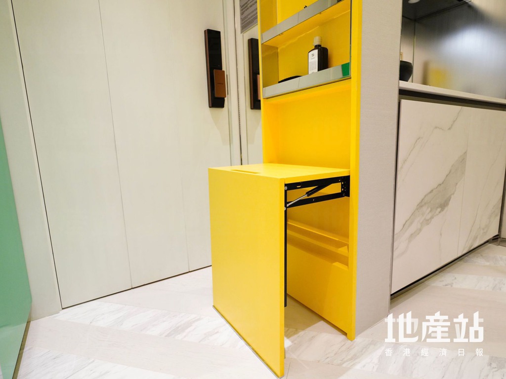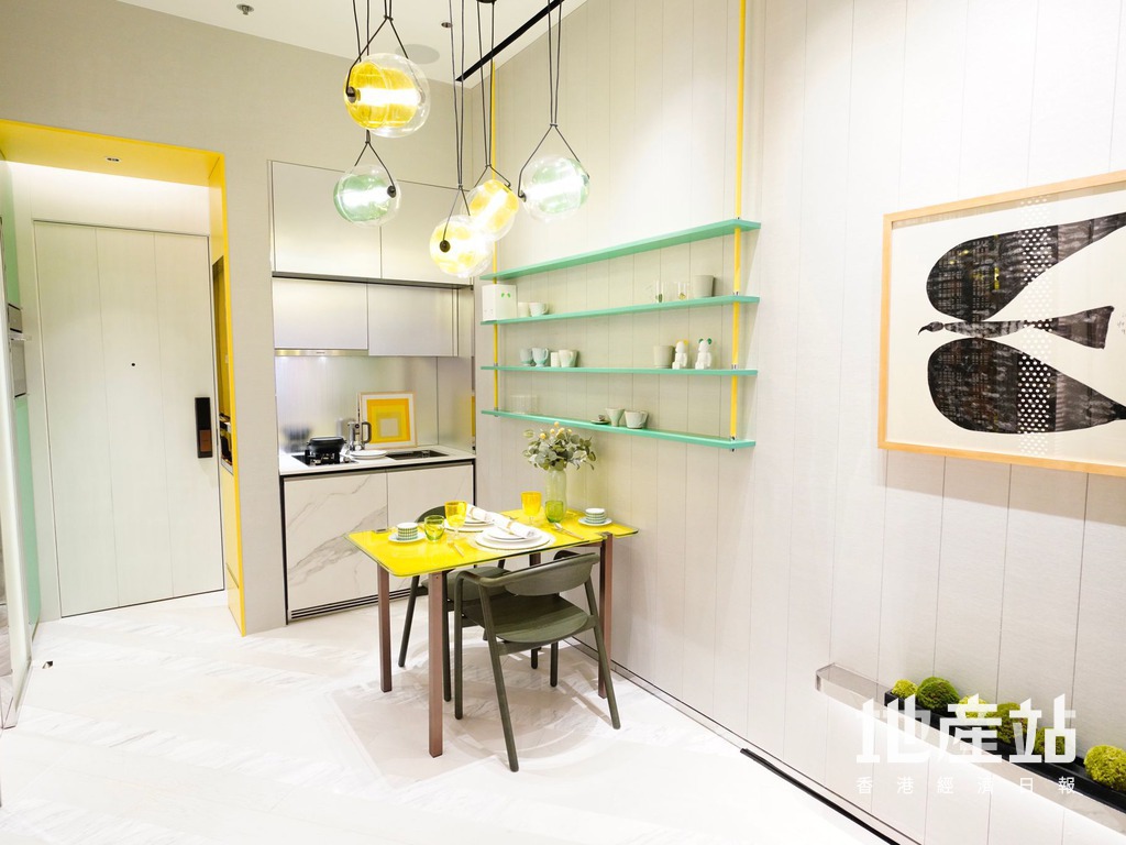 其中1房連儲物室連裝修示範單位,單位位於第2座23樓C室,實用面積320平方呎。設計師以清爽綠黃色調作主題,鮮艷的顏色為單位增加朝氣。