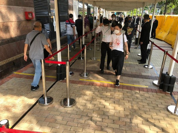 是日會分兩組銷售,A組為優先揀樓時段,須選購最少1伙三房單位,最多可購3伙,B組買家則最多可購2伙。當中,A組買家於上午約9時起有秩序,並保持社交距離陸續入場。
