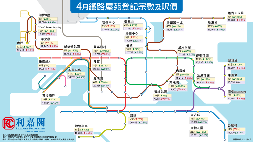 【鐵路屋苑】4月鐵路屋苑登記宗數及呎價