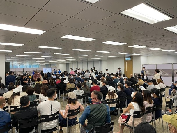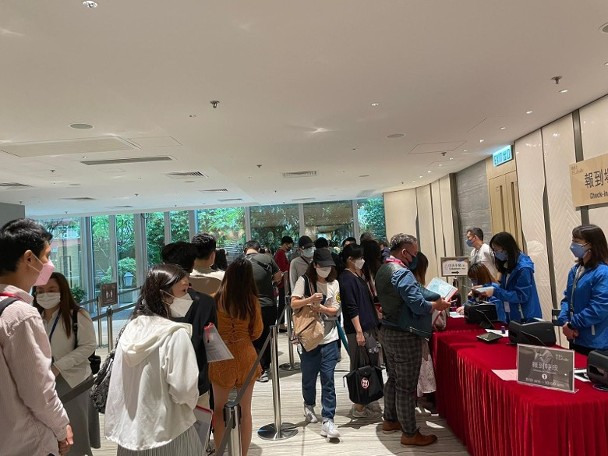 大批準買家由早上起,陸續到達鰂魚涌英皇道嘉里中心的售樓處報到,輪候揀樓,人流暢旺,氣氛熱鬧。消息指,截至下午,項目即日發售單位接近沽清,售出57伙,套現逾4.8億元。