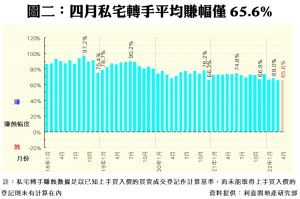 數據顯示,今年四月份每宗私宅轉手個案平均賺幅為65.6%(見圖二),按月再跌0.5個百分點,連跌兩個月,創下2016年9月以來的68個月最少賺幅。四月份,帳面獲利1倍或以上的轉手個案佔整體二手私宅買賣比例為40.9%,按月回升1.4個百分點,共錄1,096宗;至於帳面錄得虧損者有120宗,佔比按月回落至4.5%,而平手的個案則有15宗,佔比微增至0.6%。