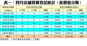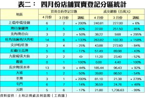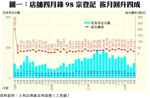 四月店舖買賣登記98宗 谷底彈升40% 處所鬆綁成動力 本月料上試百二宗