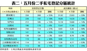 五月二手私宅登記破四千宗 9個月新高 缺盤惜售逢新盤爭客 本月料需回氣