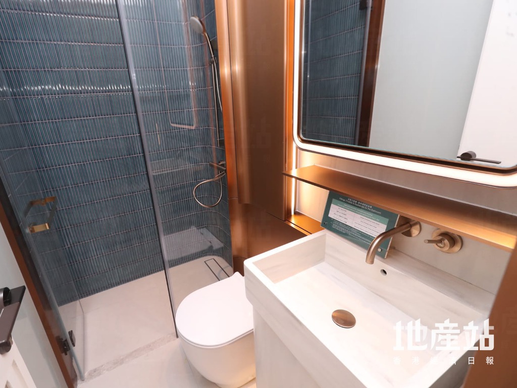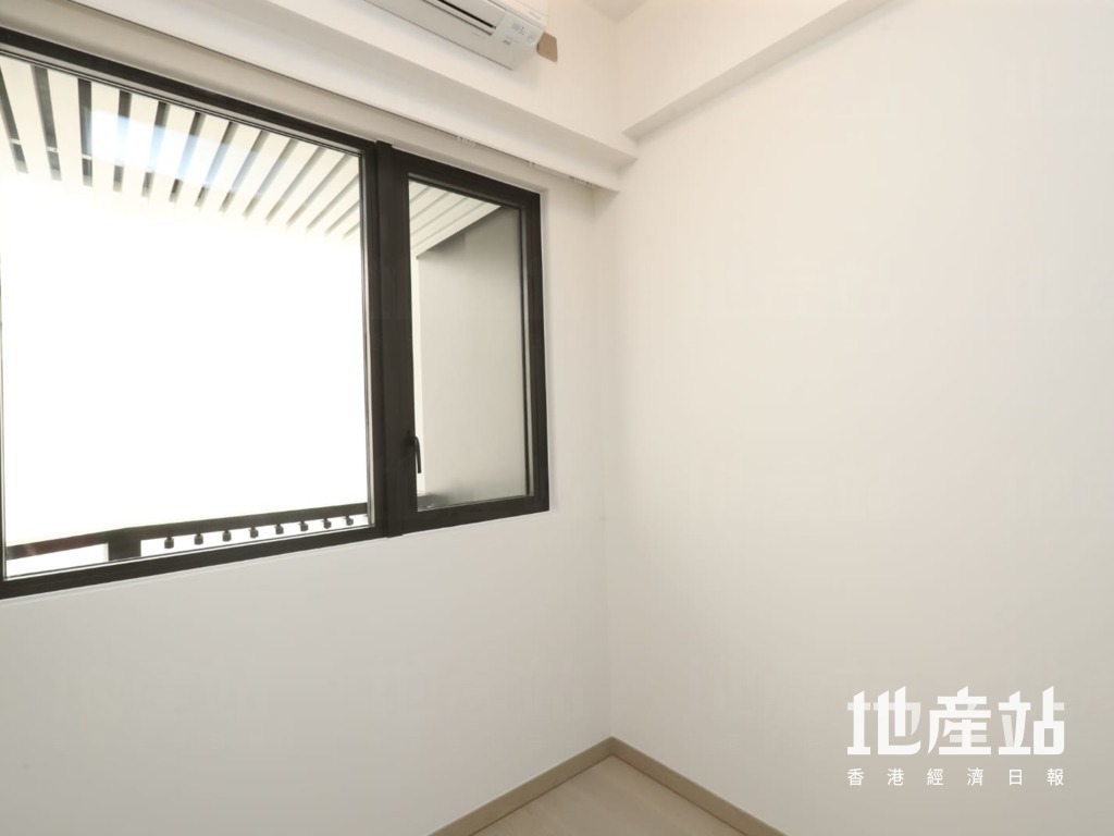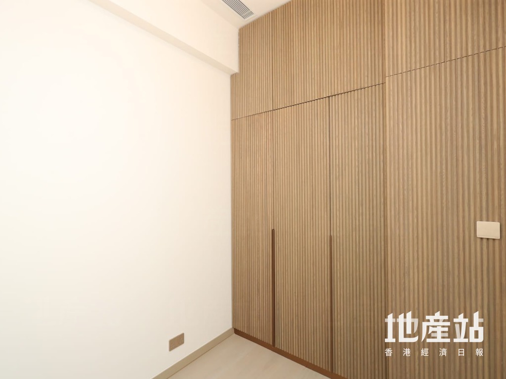 房間空間寛闊,可擺放一張雙人床及一張書桌。此外,交樓附設到頂大型衣櫃,櫃門以垂直木條打造,與大自然互相結合,與綠化元素互相呼應。洗手間設計時尚,鏡櫃儲物空間充足,企缸位置牆身以潮水綠色調,配以直紋設計,仿如沐浴於竹林之中,令人感到充滿活力、天然又療癒。