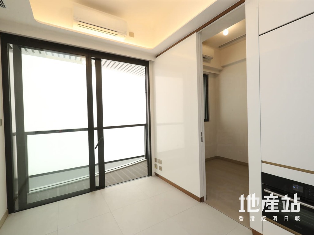 客飯廳空間方正,足夠擺放梳化、餐枱及電視﹔客廳以落地玻璃趟門連接實用面積38平方呎的三合一露合,增加其實用性之餘,亦擴闊了單位空間感。