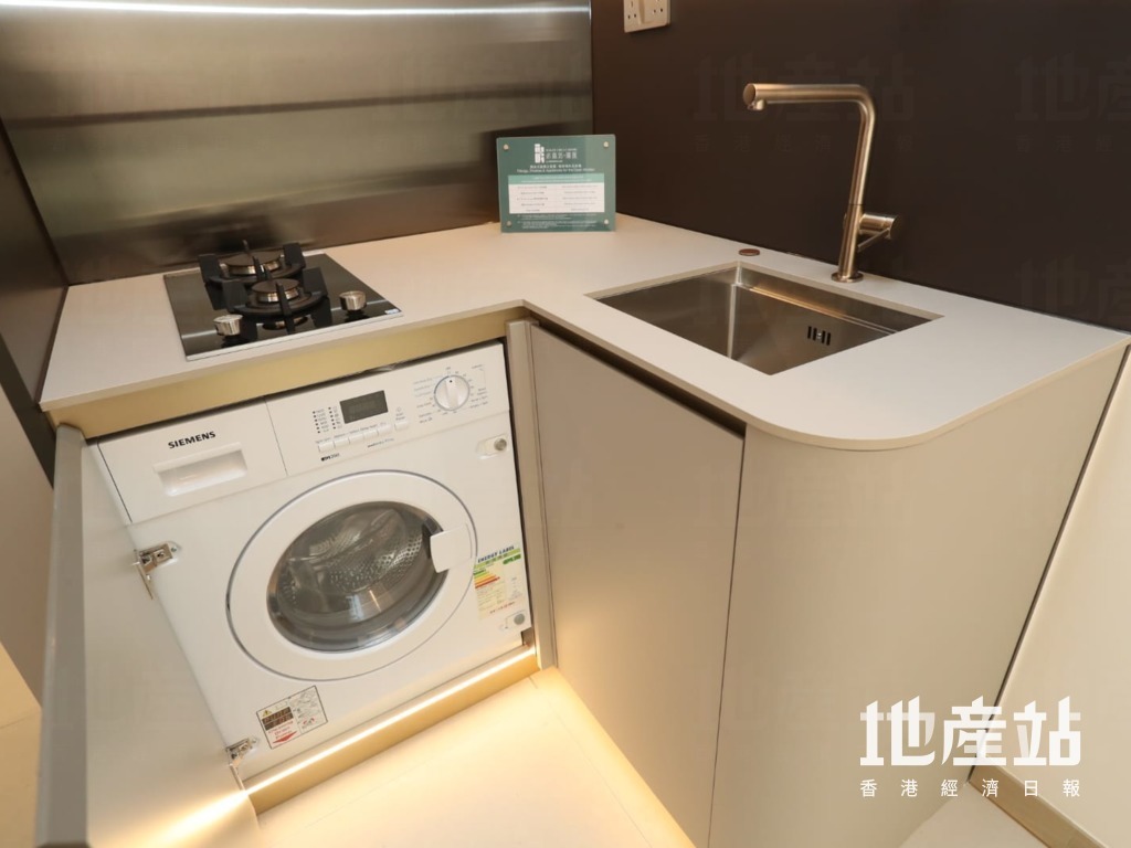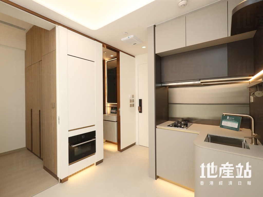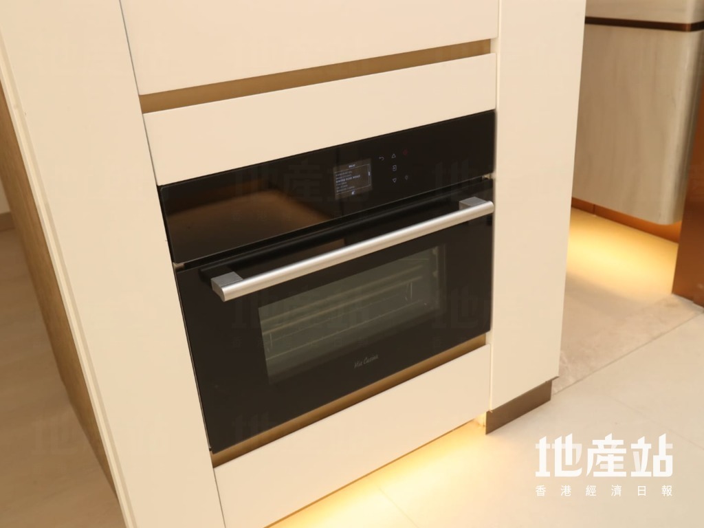 玄關天花位置,特設空氣過濾系統,住戶回到家中後,可做到即時消毒效果。開放式廚房可隨個人喜好,選擇廚房櫃門顏色。此外,廚房交樓配備基本家電,包括蒸焗爐、雪櫃、明火煮食爐及洗衣乾衣機等,五臟俱全,足夠住戶應付生活所需。