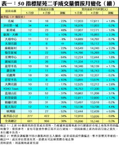 疫情緩和,購買力經過四月份一輪急攻後,筍盤被大量吸納,新一批盤源未及補充,業主見狀紛紛反價或收窄議價空間;與此同時,一手新盤大舉出爐,亦攤薄二手購買力,結果導致五月份50指標屋苑交投按月急挫38%,只錄得601宗,暫守年內第三多的月份。五月份全港三區交投量中,港島區按月挫39%,錄101宗買賣;九龍區買賣更跌41%,全月只有223宗;至於新界區也大減34%,僅錄得277宗成交。月內交投最旺指標屋苑為沙田第一城,錄得34宗成交,緊次的嘉湖山莊及美孚新村分別錄得33宗及26宗買賣。