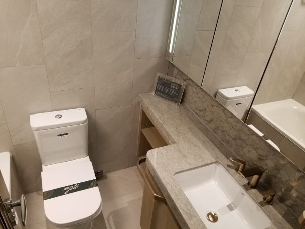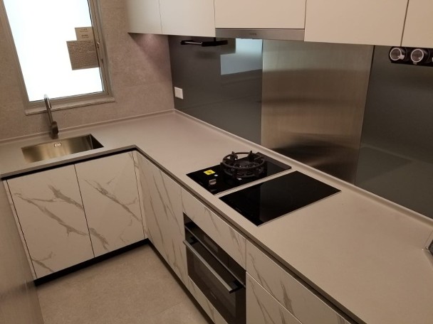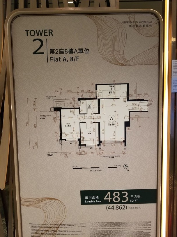 長實集團(01113)及新鴻基地產(00016)合作發展的屯門青山公路大欖段飛揚第1期,周三(22日)開放全新無改動示範單位供傳媒預覽,單位參照2座8樓A室搭建,實用面積483方呎,兩房配梗廚間隔,客飯廳由走廊分隔,入口設狹長形狀玄關位。