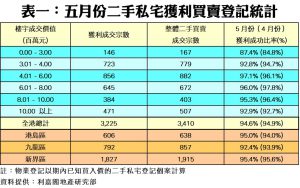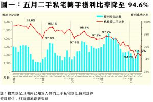 新盤息魔夾擊 五月私宅轉手獲利比率再跌 本月獲利比率及賺幅料雙雙探多年新低