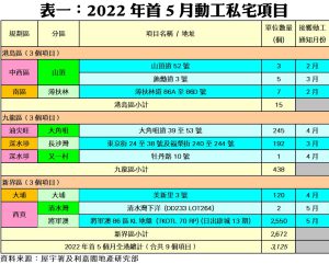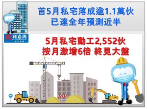 五月份動工私宅2,552伙 按月增6倍 首5月累計3,125伙 8年同期最少