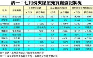 七月份夾屋買賣登記12宗 廿八個月次低 新盤帶動樓市氣氛 料八月交投量升五成