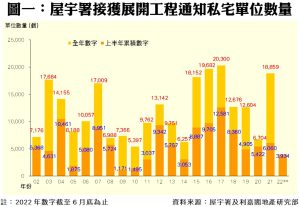 利嘉閣地產研究部主管陳海潮表示,雖然次季動工量急起直追,惟首季動工實在太少,故拖累整個上半年動工總量依然極為緩慢。根據屋宇署今日發表最新數據,2022年六月份有5個私人住宅項目動工(按屋宇署接獲上蓋建築工程動工通知為準),涉及單位694伙,較五月份的2,552伙大減逾七成(72.8%)。至於,今年上半年累積動工量有3,934伙,較去年同期的6,060伙減少35%,為2015年以來的八年同期最少。