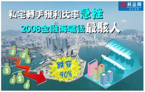 利嘉閣地產研究部主管陳海潮表示,利淡因素充斥樓市,二手私宅轉手獲利比率近月出現急降,堪稱2008年金融海嘯後最嚴峻的跌勢。綜合土地註冊處資料所得,2022年八月份全港1,683宗已知上手購入價的二手私宅買賣登記中,帳面獲利個案共1,504宗,佔比89.4%,較前月顯著回落2.9個百分點,為2010年一月以來的152個月(即逾12年半)新低,並為期內首度跌穿九成的水平。今年以來,獲利比率已較去年底的96.2%累跌6.8個百分點,為自2008年金融海嘯後,十四年來按年跌幅最驚人的一年。