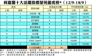 利嘉閣地產董事陳大偉表示,上車客對未明朗的市況保持觀望,偶爾在零星「筍盤」釋出時才主動出擊接盤;另外,發展商再度推出大型一手新盤,導致二手屋苑交投回軟。綜合利嘉閣地產分行數據所得,全港十大活躍指標屋苑在上周(12/9–18/9)錄36宗買賣個案,較前周(5/9–11/9)的39宗按周微跌8%,每個屋苑平均錄約3至4宗成交。