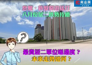 利嘉閣地產研究部主管陳海潮表示,發展商接連推出「貼市價」新盤攻佔房地產市場,加上按揭利率升勢未停,導致居二市場陷入凍結。據香港房屋委員會及房屋署網頁最新數據,今年八月份全港錄146宗居屋第二市場買賣個案(按簽署臨時買賣合約的成交為準),較七月份的154宗按月下跌5%,跌穿年初150宗水平。至於同期物業成交總值約7.18億元,亦較七月的7.61億元同步減少6%。