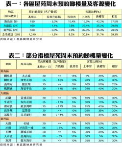 利嘉閣地產研究部主管陳海潮表示,本港銀行近四年來首度上調P按息率,加息0.125厘,市場隨即有業主主動減價放盤,惟準買家態度觀望,周末50指標屋苑預約睇樓量微跌。根據利嘉閣地產研究部數據估算,全港50個指標屋苑共錄1,210組客戶於周末預約睇樓,按周減少1.6%,連跌三周並創六個周末新低。樓市受壓之下,金管局下調壓力測試要求至2厘,而且政府公布抵港檢疫措施放寬至「0+3」,料對經濟及樓市有正面提振作用。