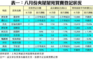 八月份夾屋買賣登記16宗 重越年初水平 按揭利率升勢未止 九月交投量料續拉鋸