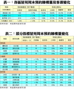 按地區劃分,港島、九龍及新界三區指標屋苑的周末預約睇樓量兩升一跌,其中以新界的增幅較多,該區21個指標屋苑本周末暫錄610組客戶預約睇樓,按周增加5.2%。利嘉閣地產天盛分行經理蕭啟諾指出,受惠於金管局放寬按揭壓力測試,加上業主提供的議價幅度合理,嘉湖山莊上車客入市意欲增加,睇樓人數增多。蕭啟諾表示,隨著大型新盤銷售暫告一段落,而且政府放寬防疫措施,再加上特首將於月內發布施政報告,連串利好消息可望為區內二手市況帶來正面刺激。