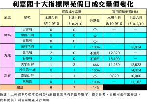 《利嘉閣十大指標屋苑假日二手實況》 等待二十大及施政報告 觀望氣氛濃厚 十大屋苑周六日錄6宗買賣 持續偏淡