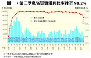 利嘉閣地產研究部主管陳海潮表示,疫情及加息因素令樓市拾級而下,加上股市大跌及移民急需沽貨套現,致令二手私宅轉手獲利比率及賺幅雙雙下挫,惟望第四季可跌定回穩。綜合土地註冊處資料所得,2022年第三季本港共錄4,415宗私宅轉手獲利買賣登記,佔同期已知上手買入價的二手私宅買賣比例達90.2%,較第二季的94.3%大跌4.1個百分點,連跌6季,並創2010年首季以來的51季(即近13年)新低,反映疫情及加息夾擊帶來的影響。