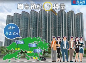 利嘉閣地產研究部主管陳海潮表示,施政報告公布合資格外來人才在港買樓,住滿七年成為永居後可申請退還買家印花稅及新住宅印花稅,長遠對樓市有支持作用;發展商旋即展開推盤步伐,當中不乏價格貼市的新界上車盤,成功搶佔準買家的目光,周末二手指標屋苑預約睇樓量稍回落。根據利嘉閣地產研究部數據估算,全港50個指標屋苑共錄1,195組客戶於周末預約睇樓,按周下跌2.8%。