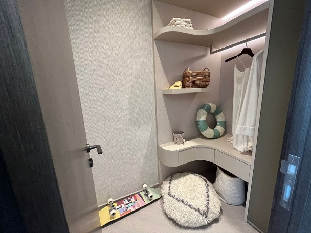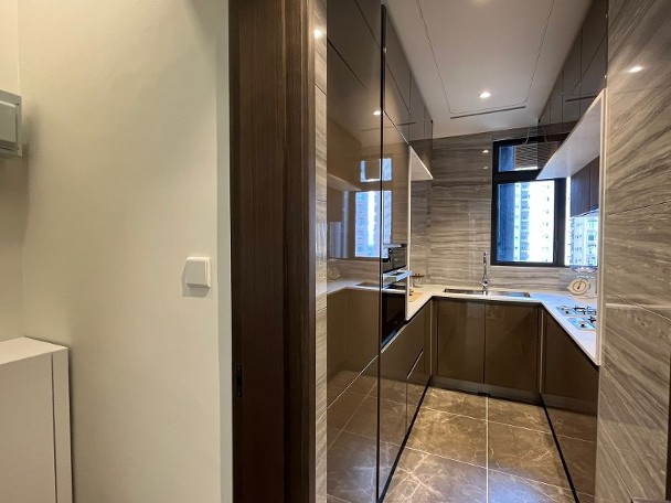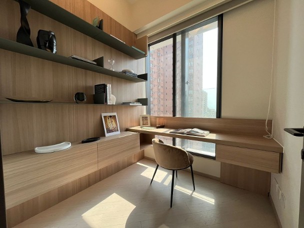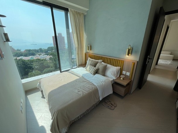 廚房採梗廚設計,附連工作室及洗手間。設計師將其中一間睡房布置成書房,而主人睡房外連工作平台,並備有觀景大窗,享有開揚海景。