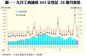 利嘉閣(工商舖)地產董事黃應年表示,工商舖低迷時期在第三季持續浮現,冀施政報告塵埃落定後,挾搶企業、振經濟的大方向,可一併激活今季的市道。根據利嘉閣(工商舖)地產資料所得,2022年九月全港共錄303宗工商舖物業買賣登記﹙數字主要反映2至4星期前市場實際狀況﹚,較八月的367宗下跌17%,創28個月以來新低,險守三百宗關口;至於月內買賣合約總值只有37.21億元,按月急挫94%,主因前月有3宗合共527.39億元的疑屬內部轉讓巨額登記抽高基數所致,倘撇除相關登記後,月內實際登記總值跌幅約23%。