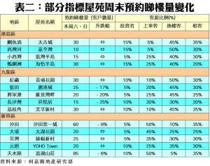 新盤百花齊放 爭搶市場焦點 50指標屋苑週末預約睇樓量跌2.1%