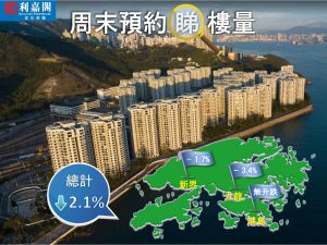 利嘉閣地產研究部主管陳海潮表示,連月來樓市下行趨勢已現,市場觀望氛圍甚濃。有見及此,發展商接連推出多個一手項目,部分更以「親民價」作招徠,吸引上車客認購,令傳統屋苑客源進一步被攤薄,周末二手指標屋苑預約睇樓量持續回軟。根據利嘉閣地產研究部數據估算,全港50個指標屋苑共錄1,170組客戶於周末預約睇樓,按周下跌2.1%。