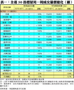 至於,九龍區21個指標屋苑上周共錄37宗成交,較前周的34宗增加9%,當中將軍澳區5個指標屋苑交投量較活躍,新都城期內共錄得3宗買賣,按周增幅達2倍;將軍澳中心成交量由前周的2宗,大增1.5倍至上周的5宗;維景灣畔期內錄得3宗買賣,較前周的2宗增加50%;將軍澳廣場及都會駅分別錄得3宗及2宗買賣。此外,在全港50個指標屋苑當中,上周共有14個屋苑錄得「零成交」,較前周的11個增加27%,當中港島區佔3個、九龍區佔5個,而新界區則佔6個屋苑(詳見表一)。