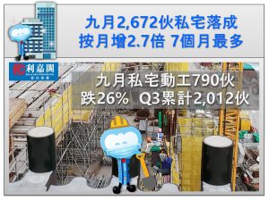 九月僅1私宅項目動工 涉790伙 首3季累計8,008伙 同比大跌39%