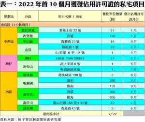 利嘉閣地產研究部主管陳海潮表示,根據屋宇署今天最新發表的資料月報顯示,2022年十月份全港共有3個項目,合共2,156個私人住宅單位落成(以屋宇署發出佔用許可證的樓宇數量為準),較九月份的2,672伙減少19%,為近八個月次高;今年首十個月合共18,753伙私宅落成,較去年同期的11,330伙增加逾65%,創自2005年以來的十八年同期最多。