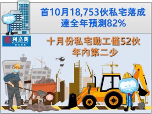 十月份私宅落成量2,156伙 按月減19% 首十個月逾1.87萬伙落成 十八年同期最多
