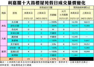 《利嘉閣十大指標屋苑假日二手實況》 通關在即料樓價反彈 買家加快腳步趕入市 十大屋苑周末23宗成交 元旦假3天錄28宗