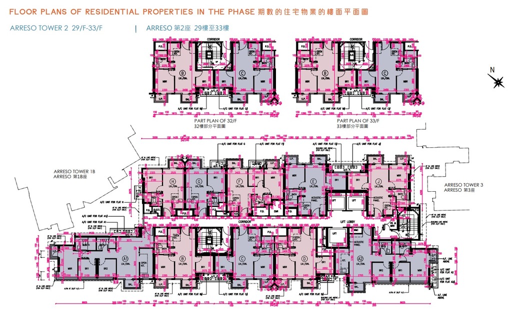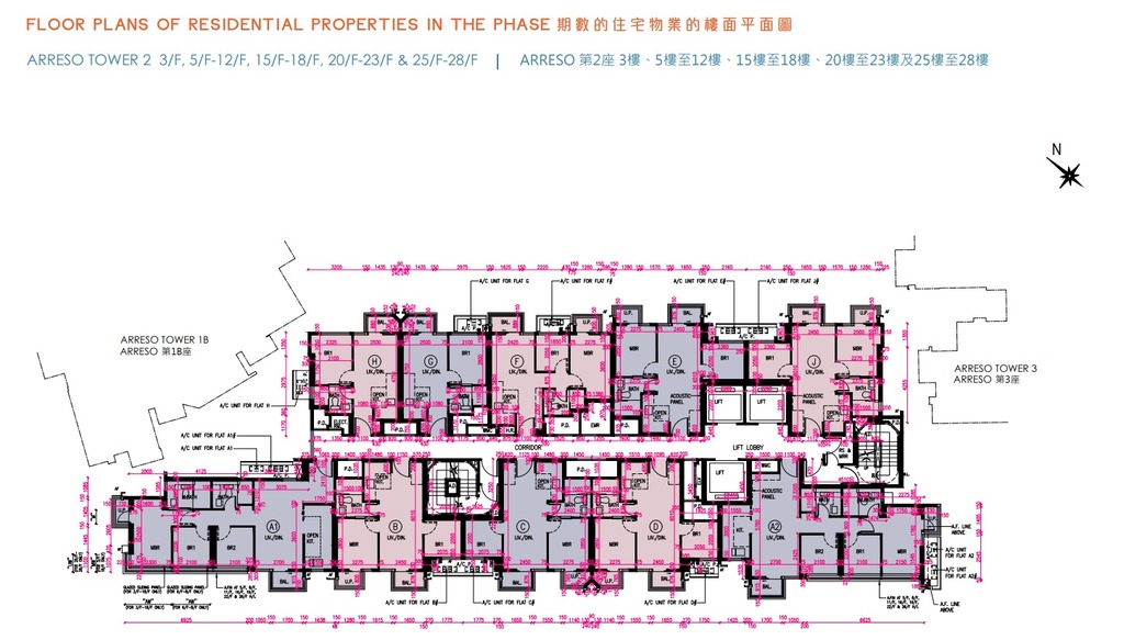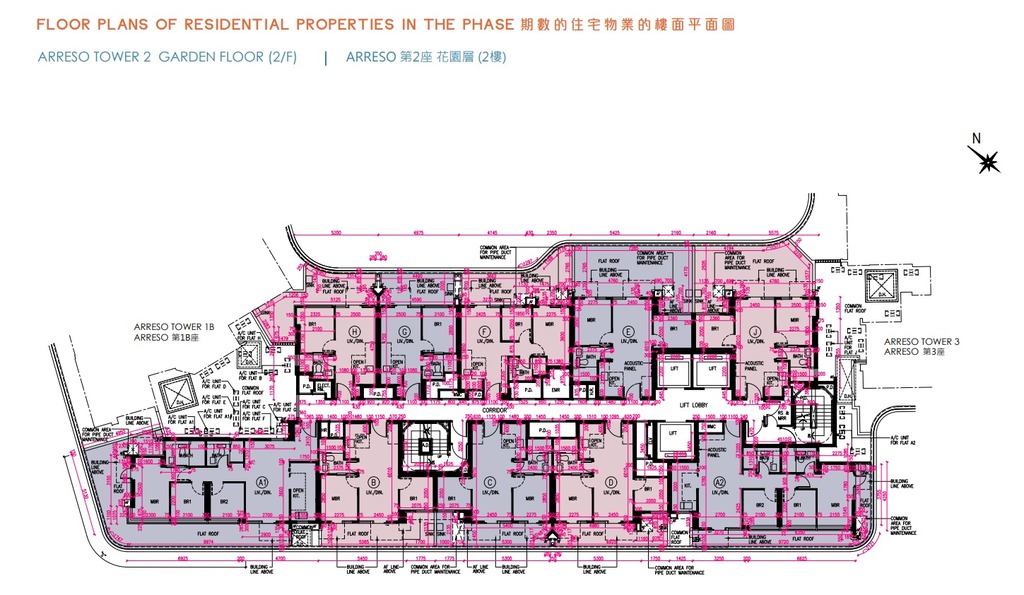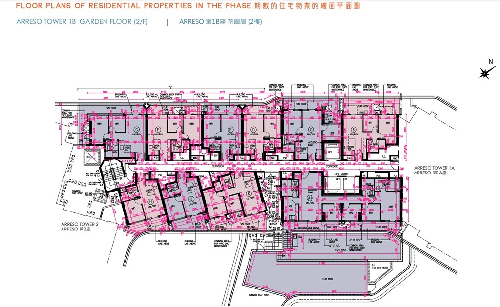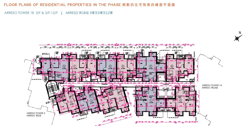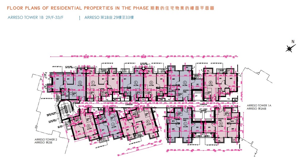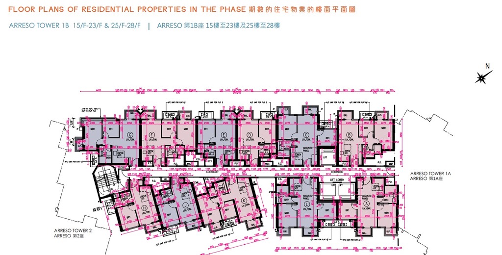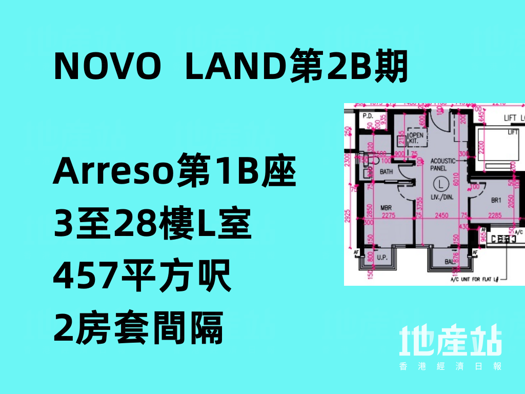 NOVO LAND第2B期的2房套單位分布於Arreso第1A座3至33樓B及D室、Arreso第1B座3至33樓C及L室、35樓C及D室,以及Arreso第2座3至33樓B至E室及J室,實用面積介乎429至457平方呎。