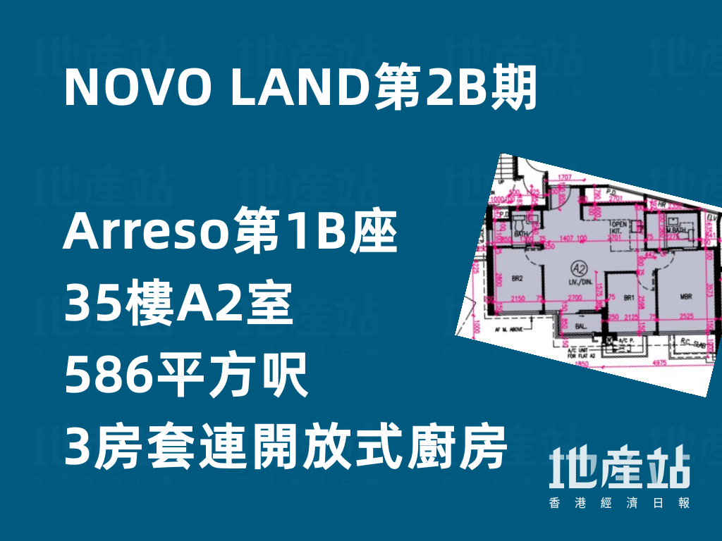 另外,Arreso第1B座35樓A2室,實用面積586平方呎,同為3房套連開放式廚房間隔,惟其開放式廚房沒有趟門分隔。