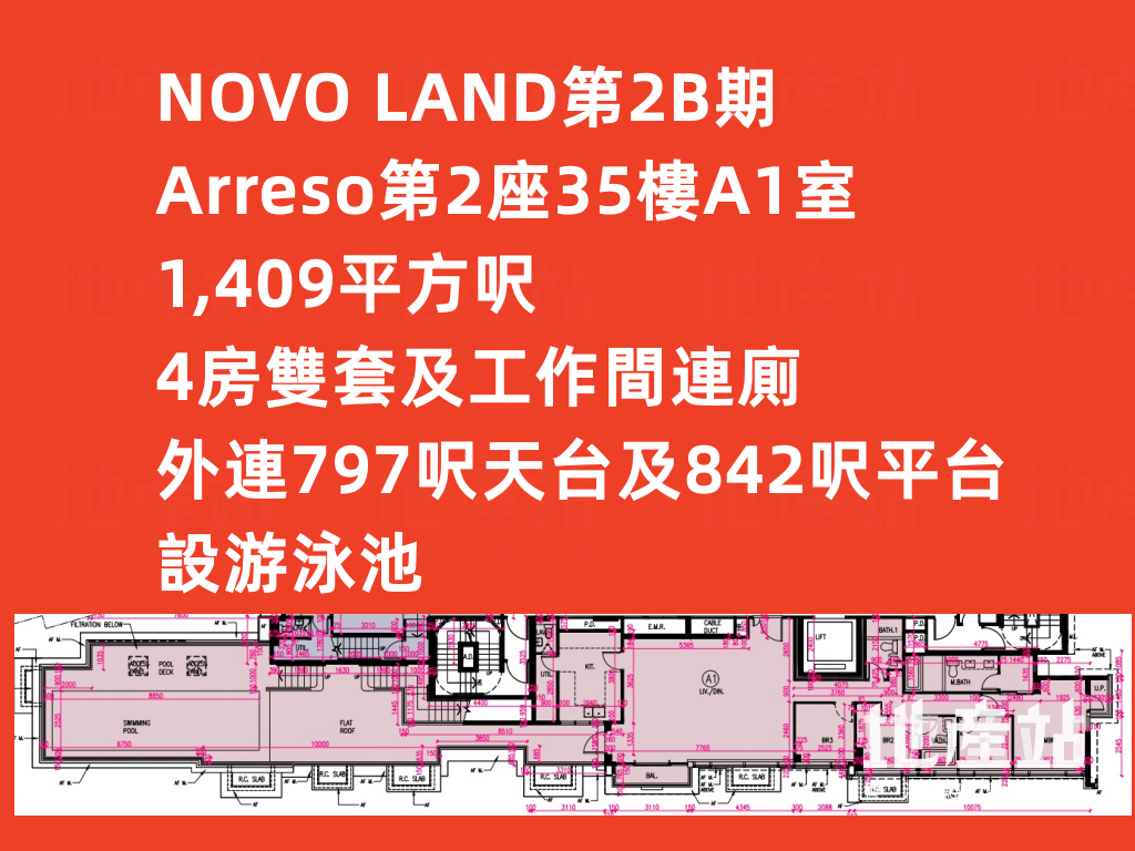 【揀樓攻略】NOVO LAND第2B期平面圖分析 1400呎特色戶連天台仲有泳池!