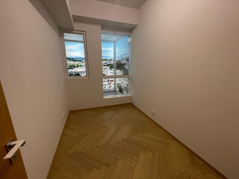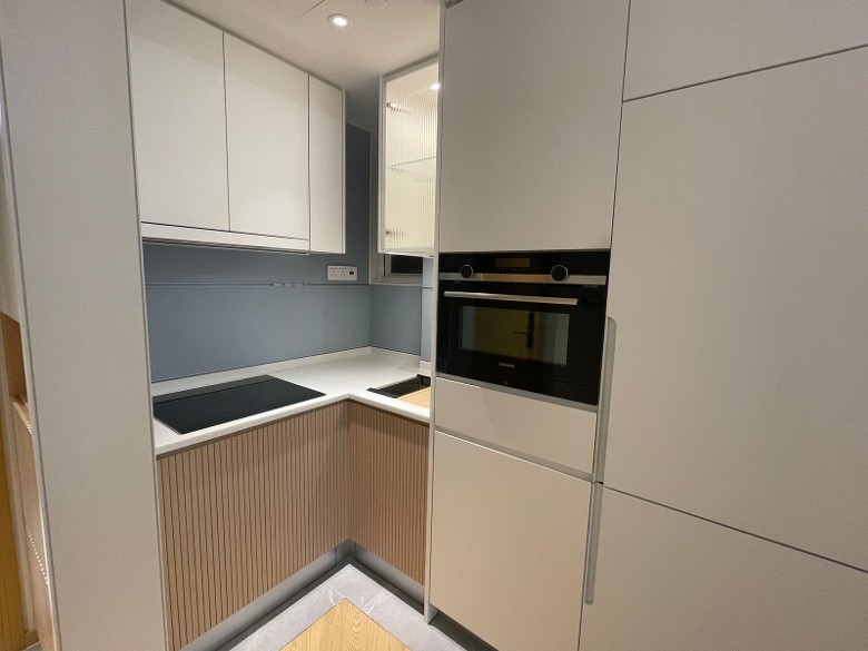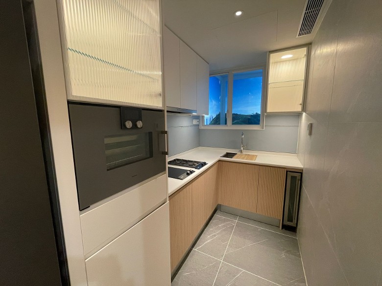 最後一個示範單位以22樓E室為藍本,實用面積717方呎,採三房一套連儲物間間隔,大門左側為梗廚,爐具家電同樣配備齊全,儲物間位於梗廚內,其中兩間睡房與客廳同向,主人套房採用L型玻璃窗設計,景觀更開揚。