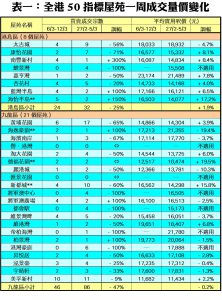 至於,新界區21個指標屋苑上周共錄52宗交投,較前周的65宗減少20%,其中藍天海岸及映灣園各自只錄得1宗買賣,按周減幅分別達80%及75%;銀湖‧天峰、盈翠半島及珀麗灣分別錄得1宗、3宗及1宗成交,各自按周減少50%;沙田第一城成交量由前周的9宗,減少44%至上周的5宗;名城及嘉湖山莊各錄3宗及9宗買賣,分別按周減少25%。此外,在全港50個指標屋苑當中,上周共有10個屋苑錄得「零成交」,較前周的6個增加67%,當中九龍區及新界區分別佔6個及3個屋苑,港島區則佔1個(詳見表一)。