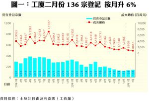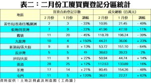 二月工廈買賣登記136宗 淡月中平穩微升 通關撤防疫 三月料爆升 冀衝二百宗
