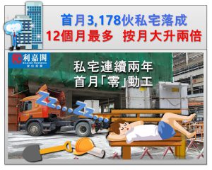 一月份私宅落成量3,178伙 十二個月新高 同期私宅「零動工」 有紀錄以來第八次