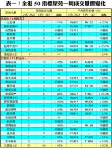 至於,新界區21個指標屋苑上周共錄45宗交投,較前周的38宗增加18%,當中新港城錄得3宗買賣,按周增幅達2倍;映灣園成交量由前周的2宗,大增1.5倍至上周的5宗;盈翠半島及灝景灣分別錄得4宗及2宗買賣,按周分別增加1倍;愉景新城及大興花園分別錄得3宗買賣,按周增幅各達50%。此外,在全港50個指標屋苑當中,上周共有11個屋苑錄得「零成交」,較前周的14個減少21%,當中九龍區及新界區分別各佔5個屋苑,港島區則佔1個(詳見表一)。