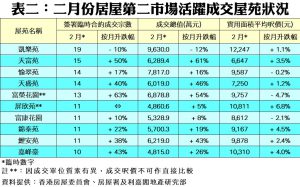 准買證持續消耗 「居二」客魚貫入市 二月未補價居屋買賣368宗 高位窄幅徘徊