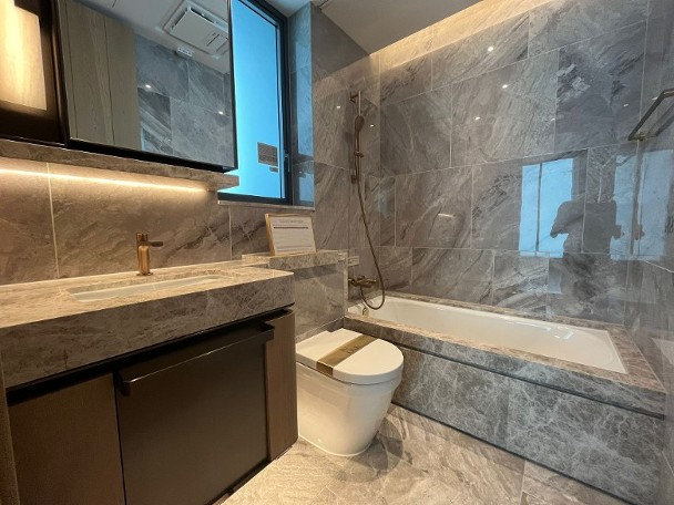 至於兩間睡房與客廳同向,其中主人睡房連接16方呎工作平台。而浴室配備浴缸,亦設有窗戶。