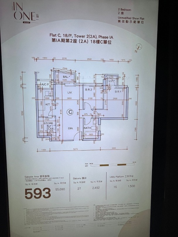 華懋集團發展的何文田站瑜一.天海,繼三房示範單位於周二(9日)曝光後,周三(10日)再對傳媒開放無改動的兩房示範單位。上述單位參照第2A座18樓C室為藍本搭建,實用面積593方呎。
