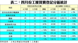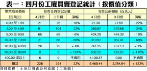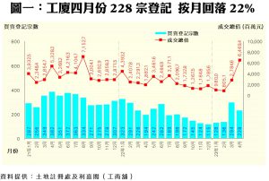 外遊休戰 四月工廈買賣228宗 萎縮兩成 本月料續整固 登記量恐窄幅徘徊