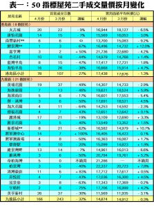 50指標屋苑4月樓價轉跌0.5% 升勢斷纜 新盤爭客 買賣雙方拉鋸 後市續低位整固