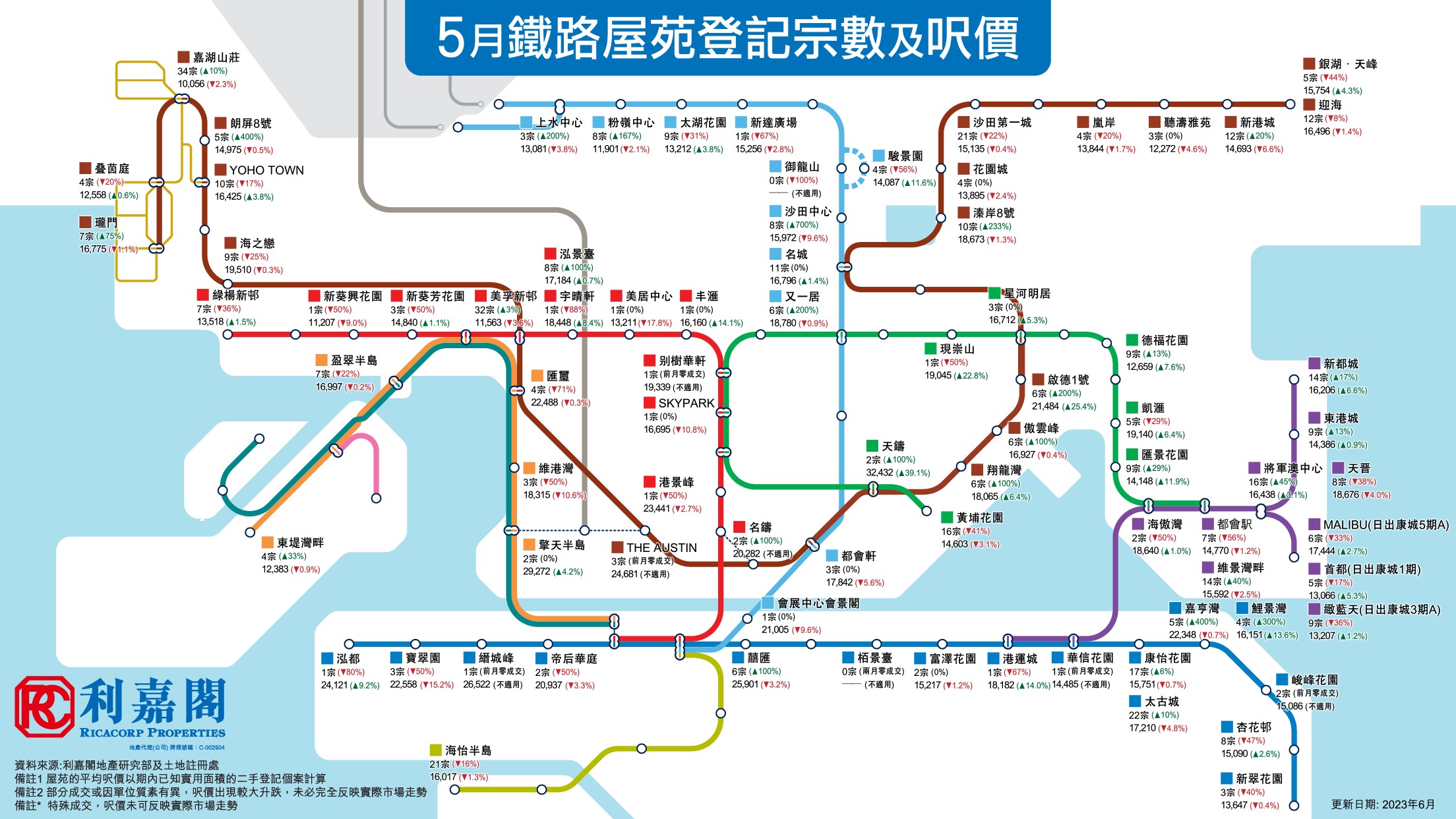 【鐵路屋苑】5月鐵路屋苑登記宗數及呎價