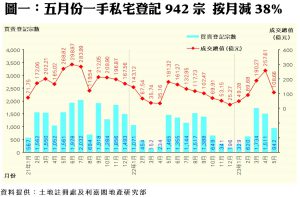 五月一手私宅買賣再挫38% 跌破千宗 新界細價盤熱銷 料緊接應市 推高六月登記